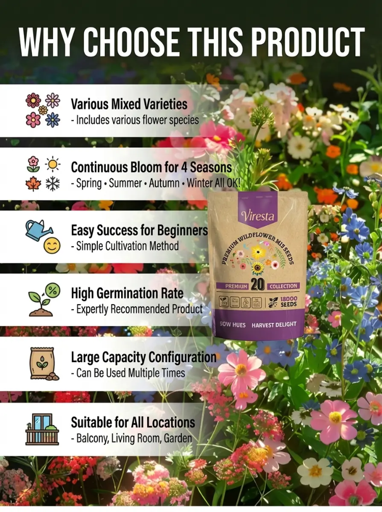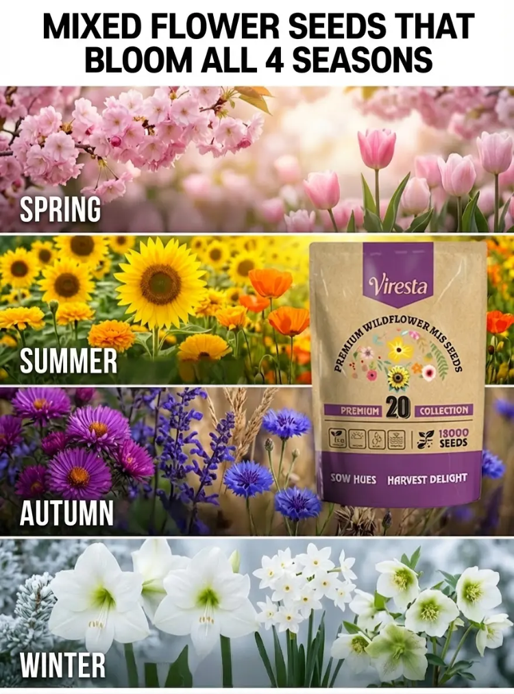 🌸 4-Season Blooming Flower Seeds – Mixed Colors, Never Fade!