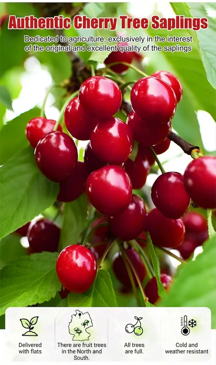 🍒 【100% Growth Guarantee】4J XXL Regina Sweet Cherry Tree Strong 2-Year-Old Saplings • Harvest in Year One • Perfect for Balconies & Gardens • Hardy to -20°C (-4°F)